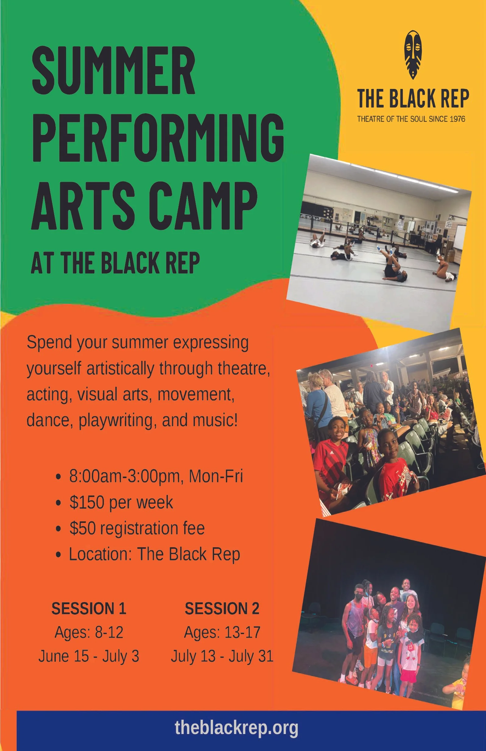 Each year The Black Rep provides an 8-week arts intensive for students ages 8-18 in the community. This program is designed to provide exciting opportunities for them to express themselves artistically through theatre, acting, visual arts, dance, movement, playwriting and music.